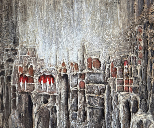 Acrylique sur toile - Format 70x90 - Profondeur : la vision abstraite d'une ville rempart qui s'élève et qui prend une lumière différente à chaque étapes de la vie. Dans cette œuvre, j'ai voulu capturer la dualité entre la robustesse et l'éphémère. Utilisant de l'acrylique rehaussé par des reliefs réalisés avec de la Modeling Paste, j'explore l'abstrait pour évoquer un paysage introspectif. Cette peinture, c'est un voyage à travers les émotions profondes, un contraste entre lumière et obscurité.