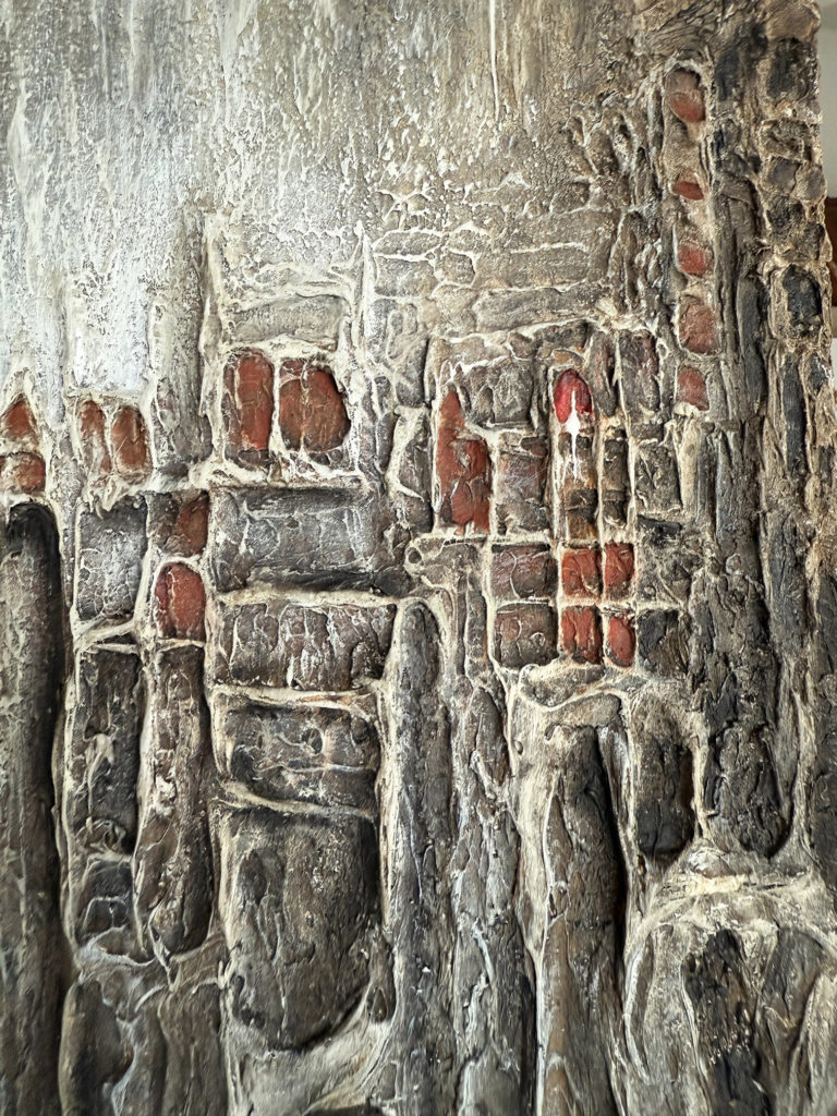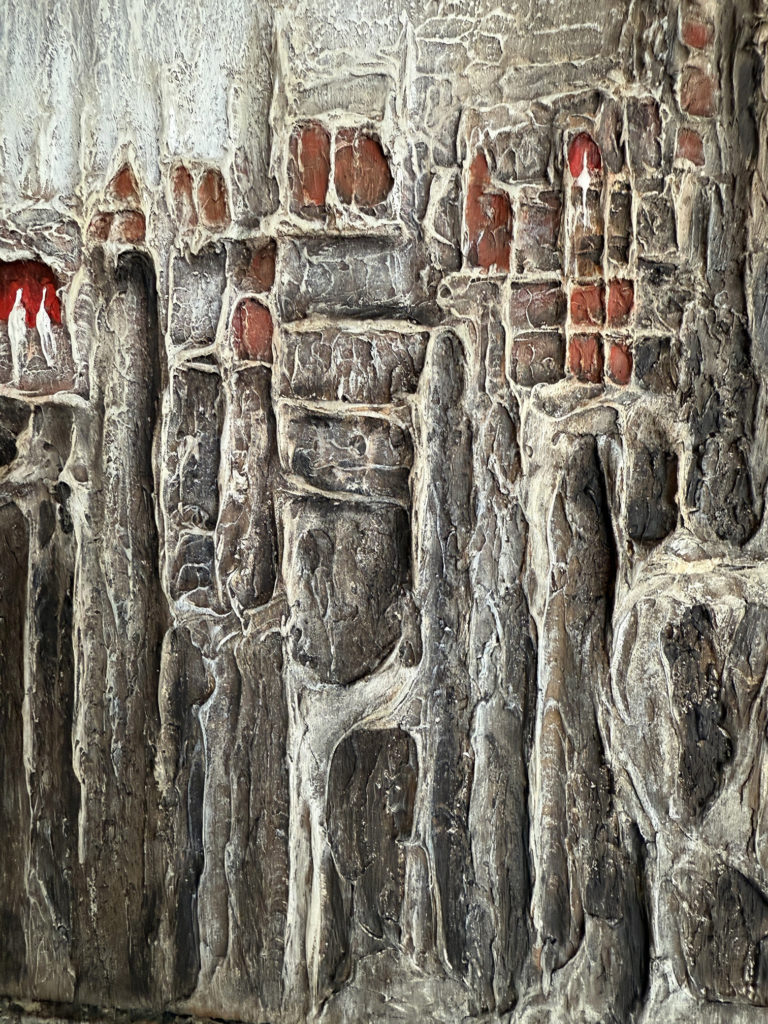 La matière, dense et texturée, donne à l’œuvre une présence à la fois brute et sensible, invitant le regard à explorer ses profondeurs.