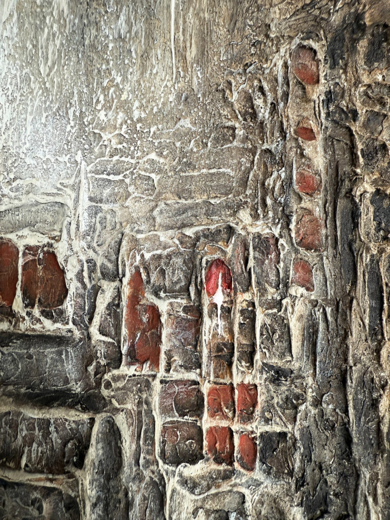 Les formes se dessinent progressivement, entre reliefs et strates, évoquant des constructions anciennes, presque troglodytes.