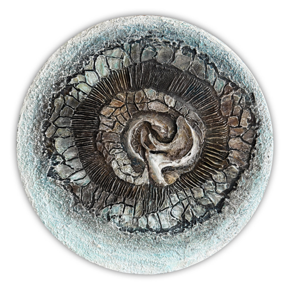 Dans cette œuvre, j’explore une matière en formation, comme un fragment de nature en train de se construire.